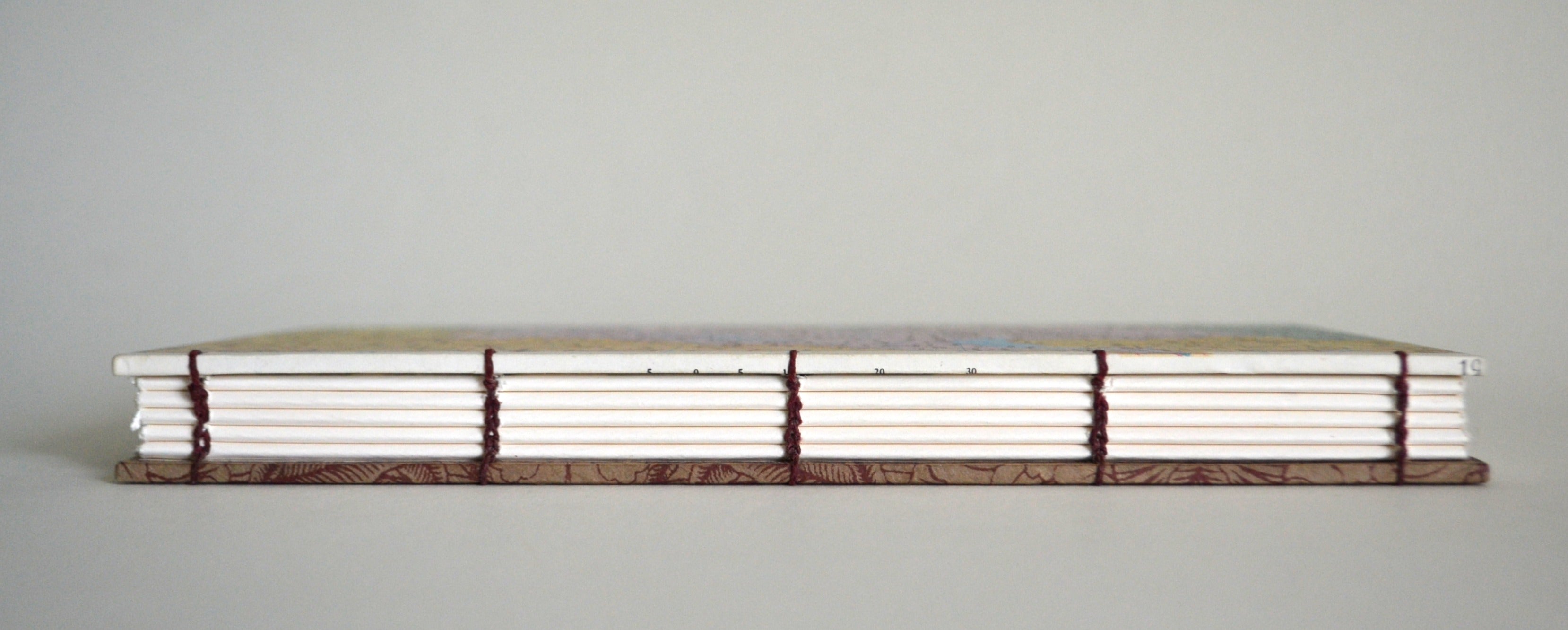 The book is is hand stitched with heavy Irish linen thread and will lay flat when open--perfect for creating and for lefties of all talents.