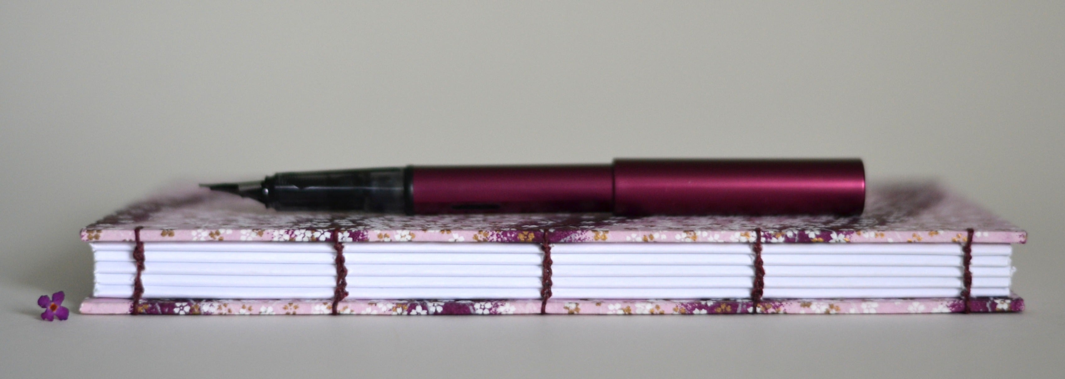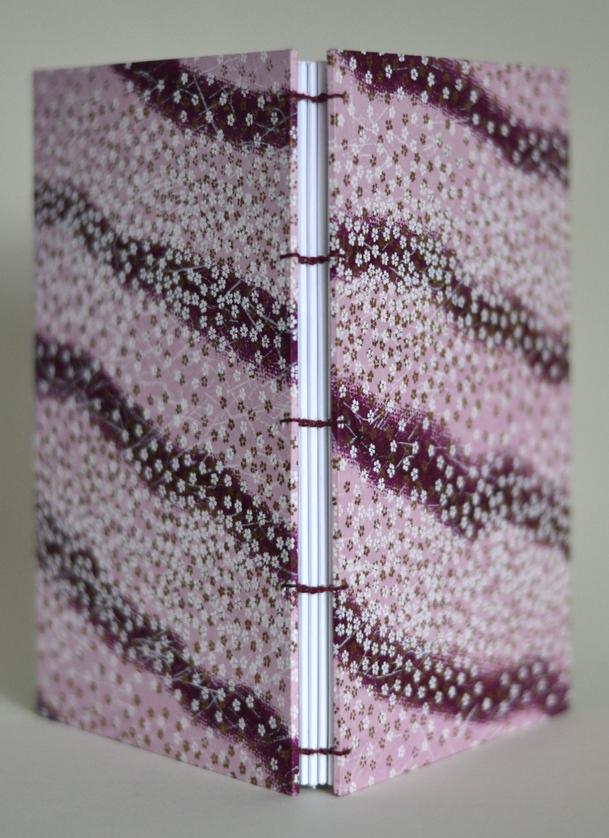 These blank books are covered in luxurious Japanese silk-screened paper, called chiyogami. They are hand stitched with heavy Irish linen thread and will lay flat when open--perfect for creating and for lefties of all talents.