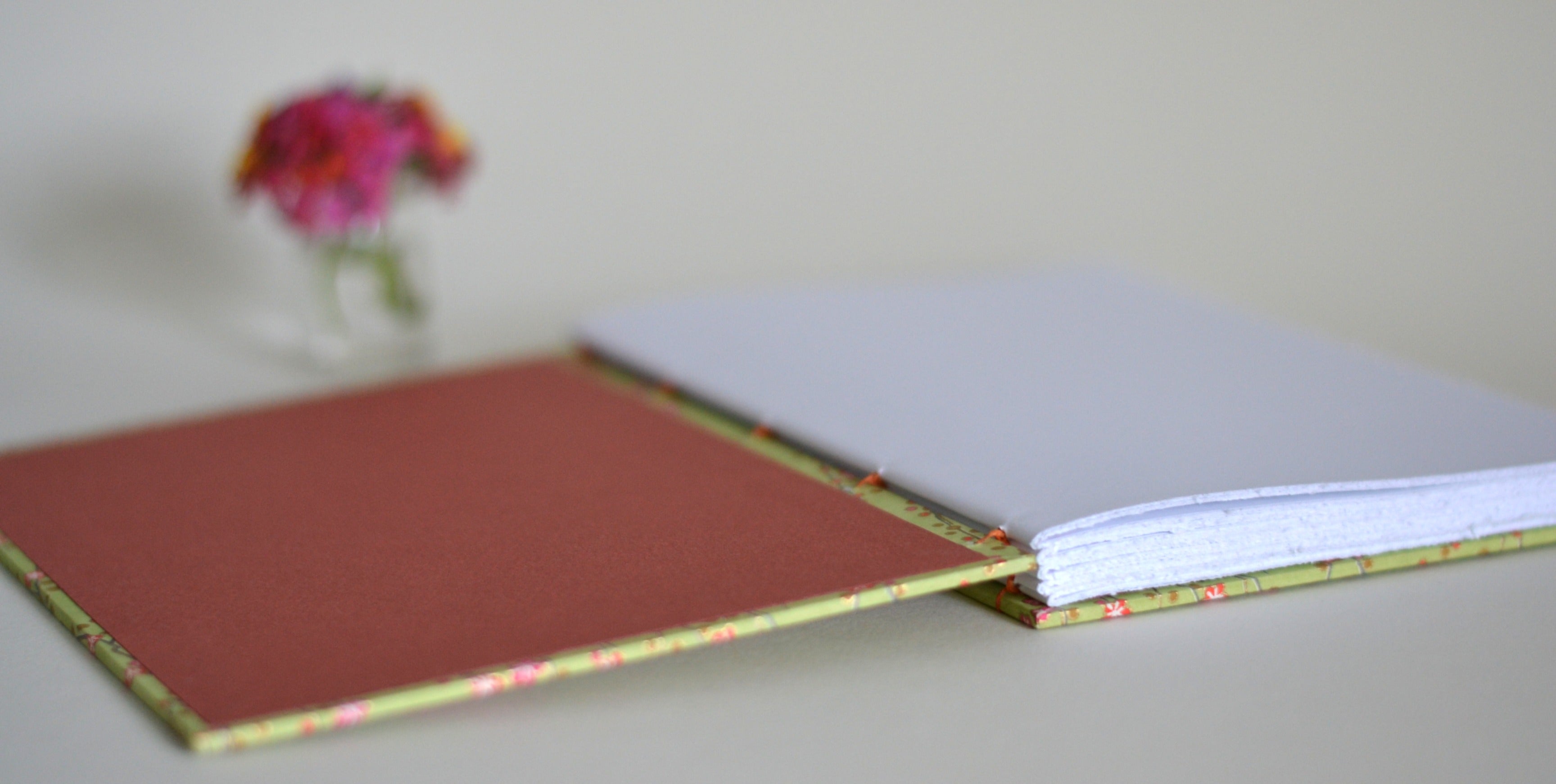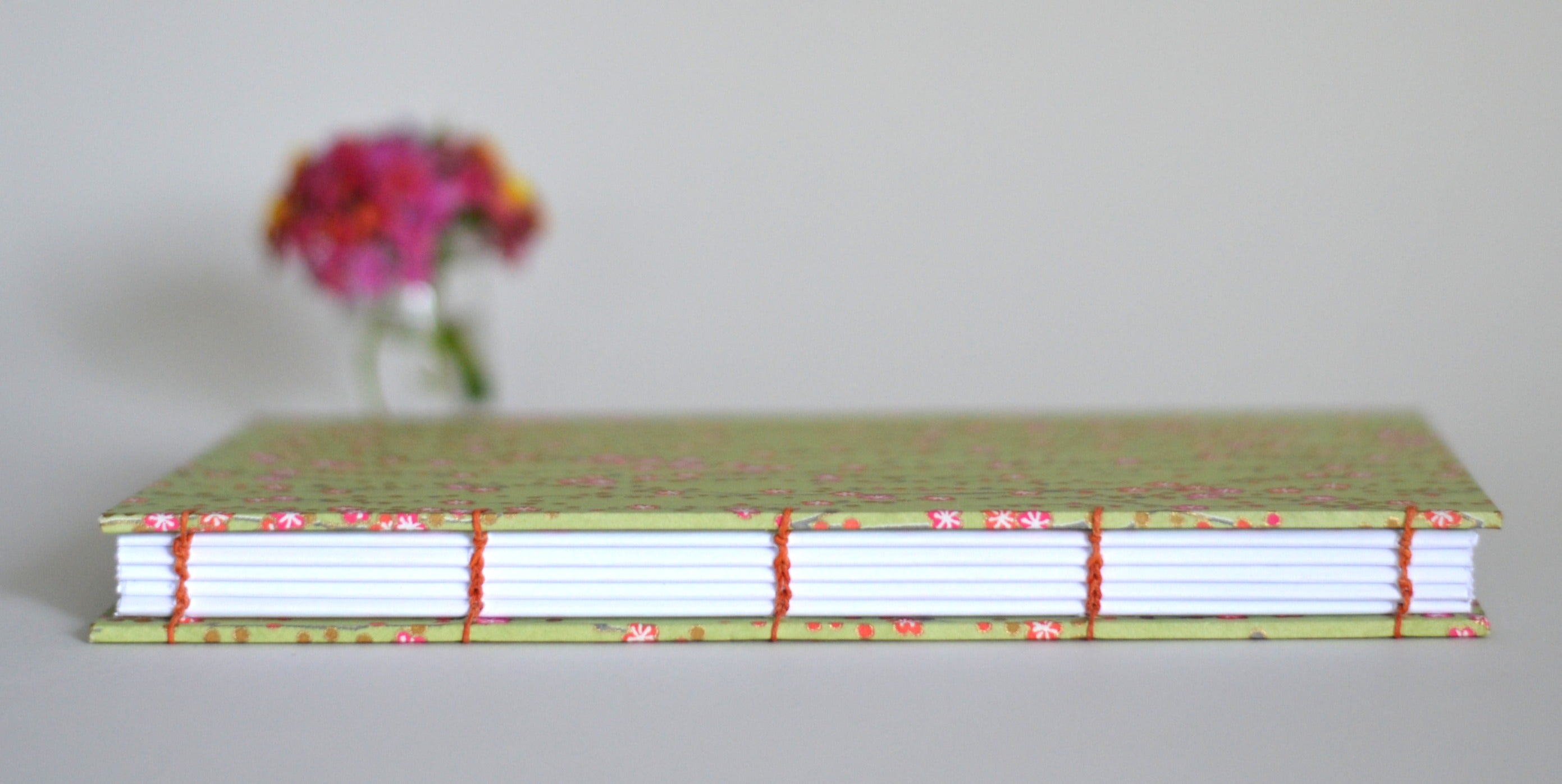 These blank books are covered in luxurious Japanese silk-screened paper, called chiyogami. They are hand stitched with heavy Irish linen thread and will lay flat when open--perfect for creating and for lefties of all talents.